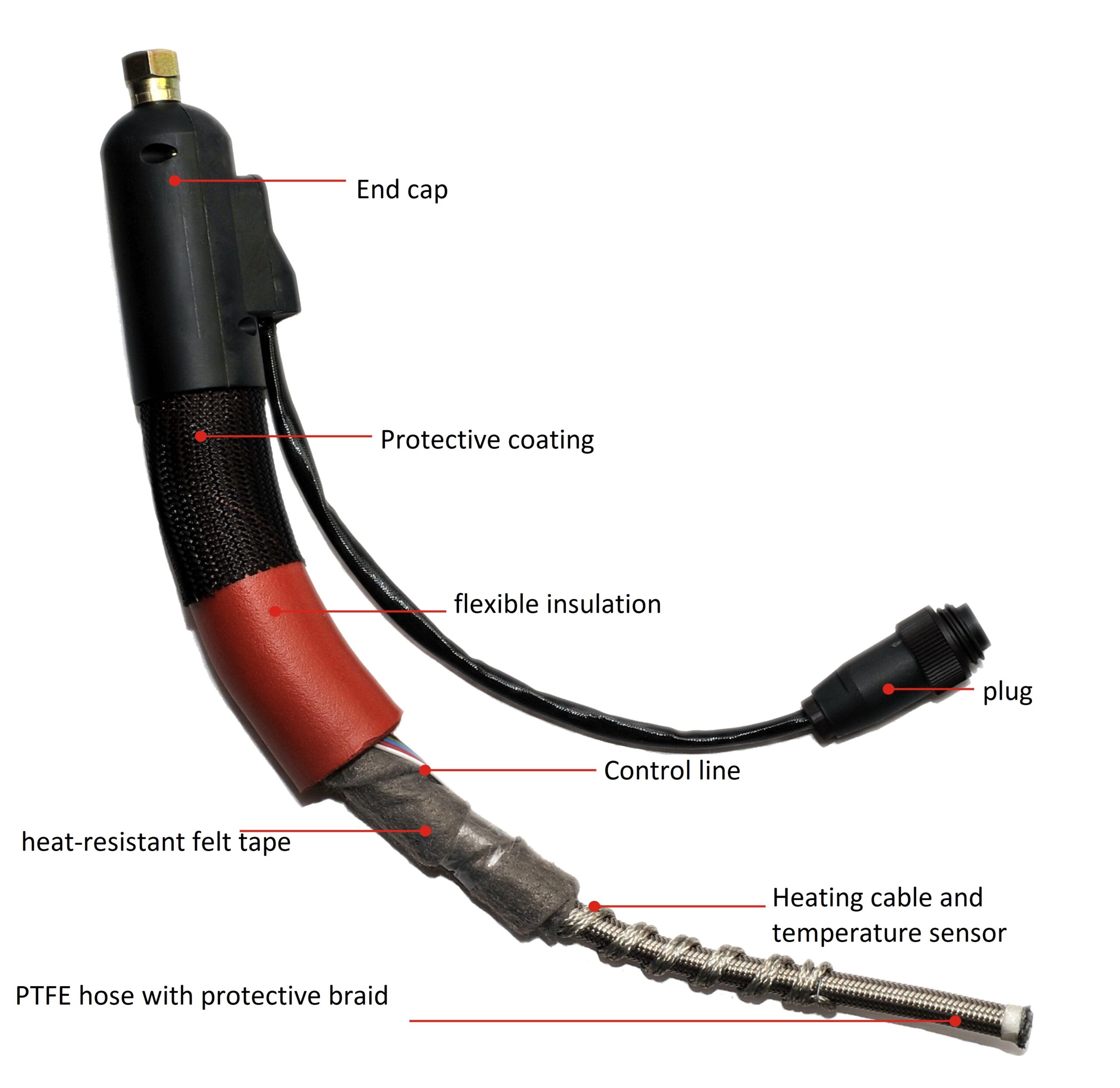 The flexible hot melt hoses, with diameters from 0,23″ to 0,62″ and variable lengths, offer a reliable connection for your application systems. These high quality produced product are system-compatible with the market standard, interchangeable and are individually manufactured to your requirements. With the option of supplying contact assignments according to your specifications and a fast delivery time, they offer a tailor-made solution for your requirements.