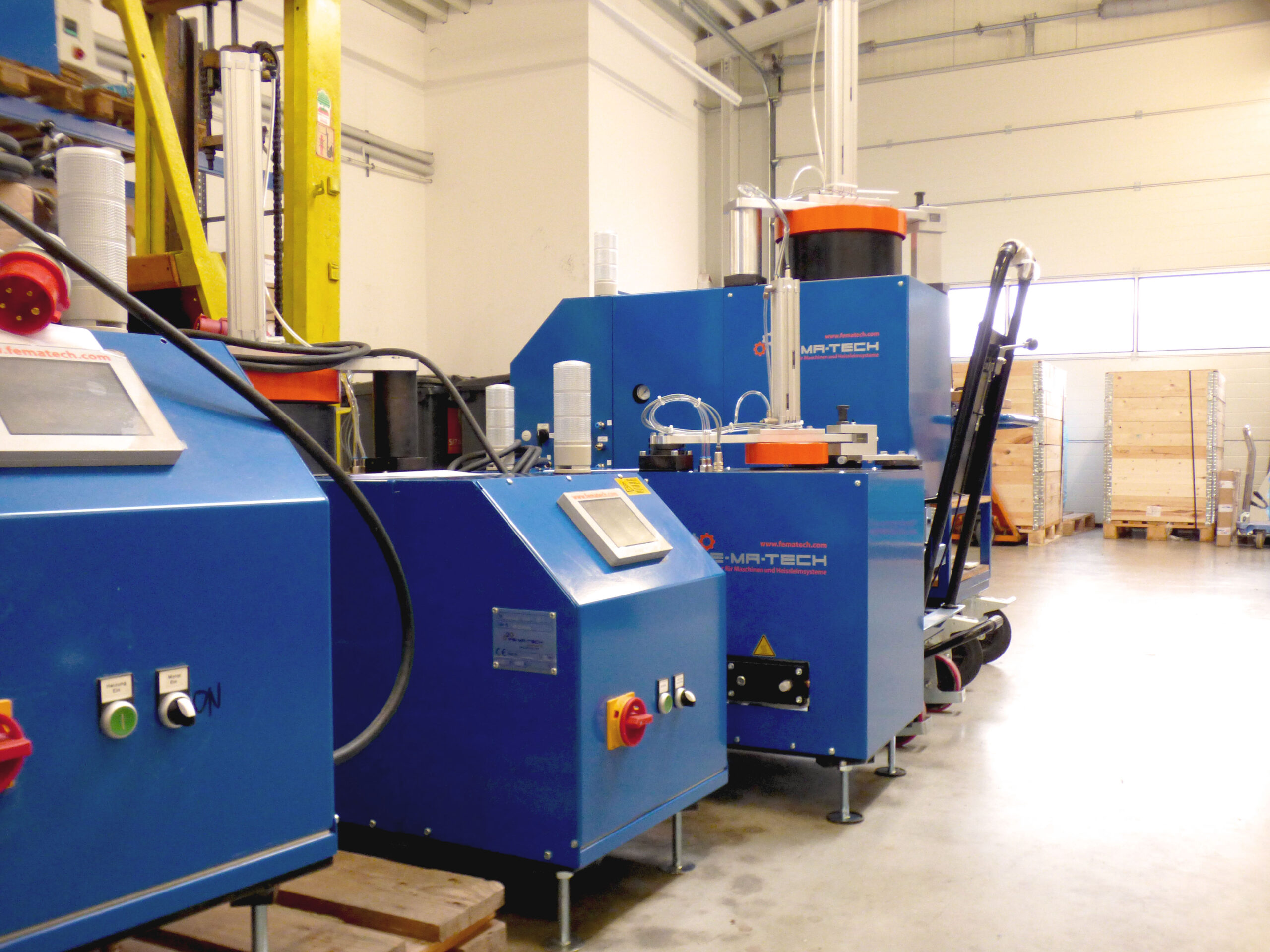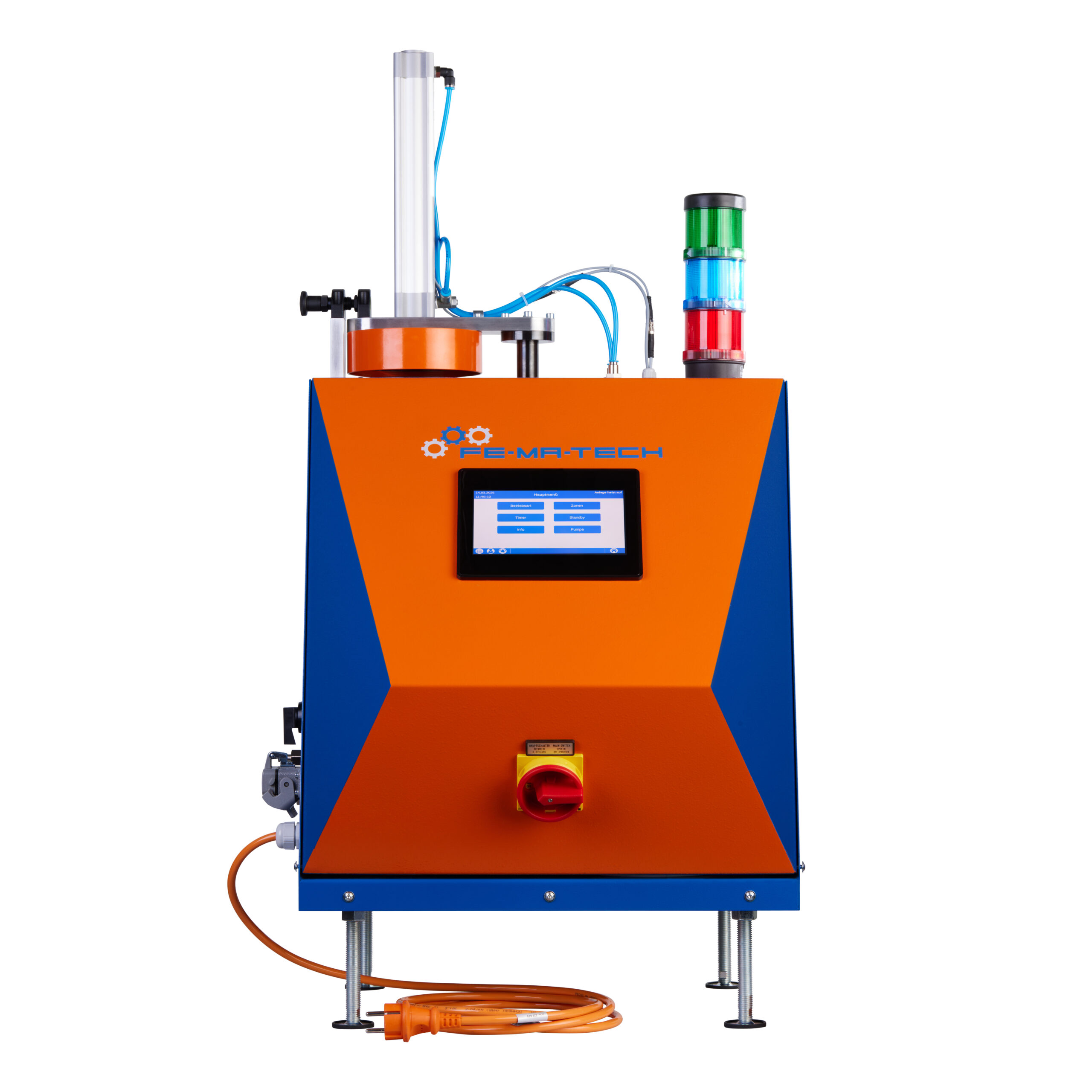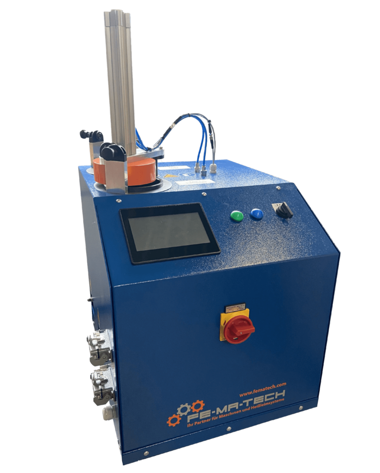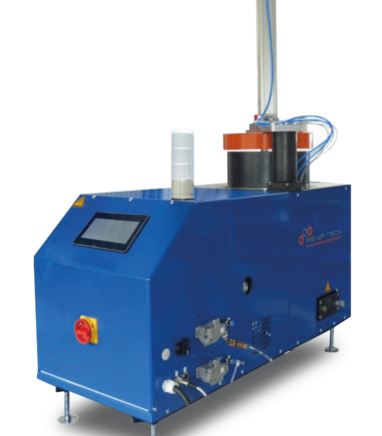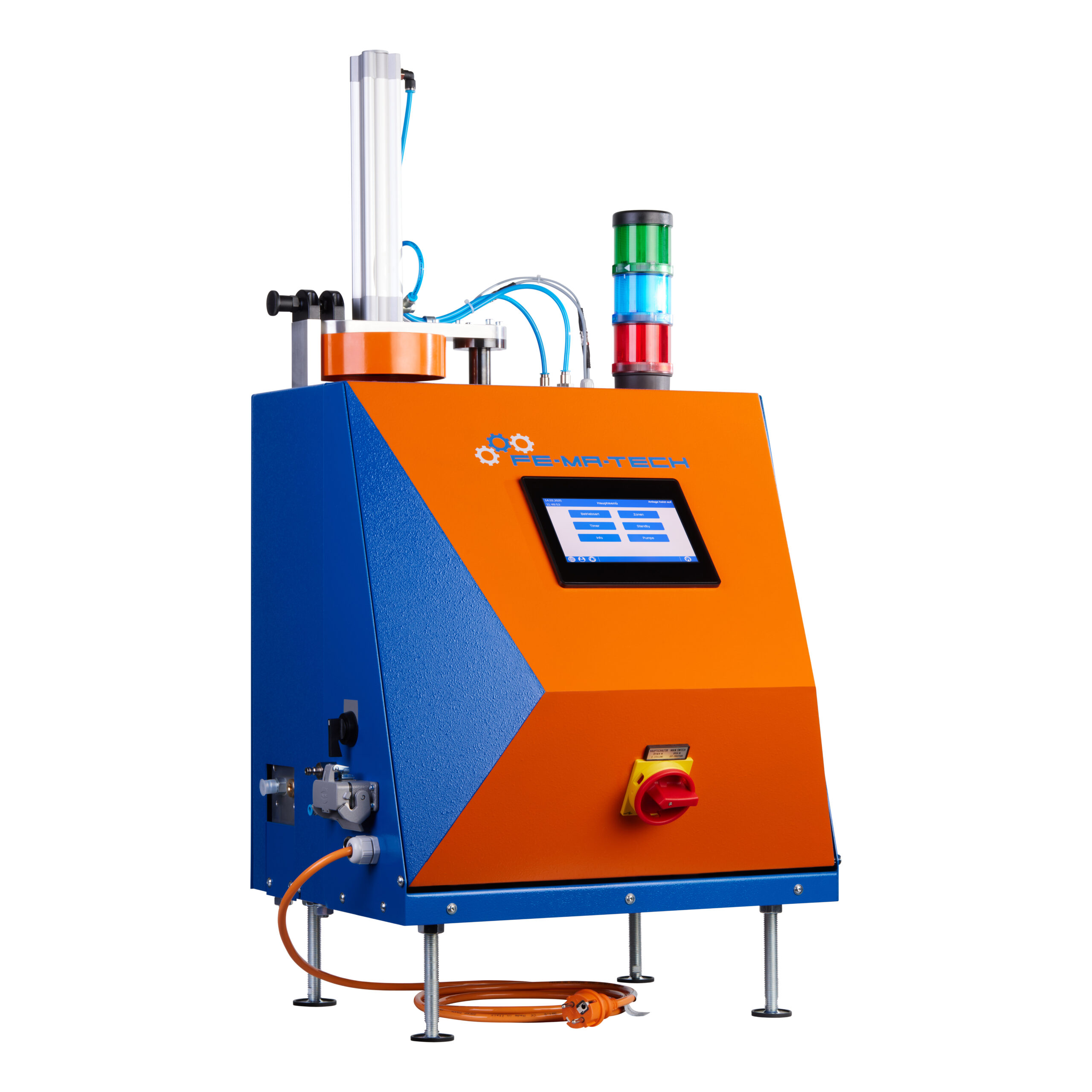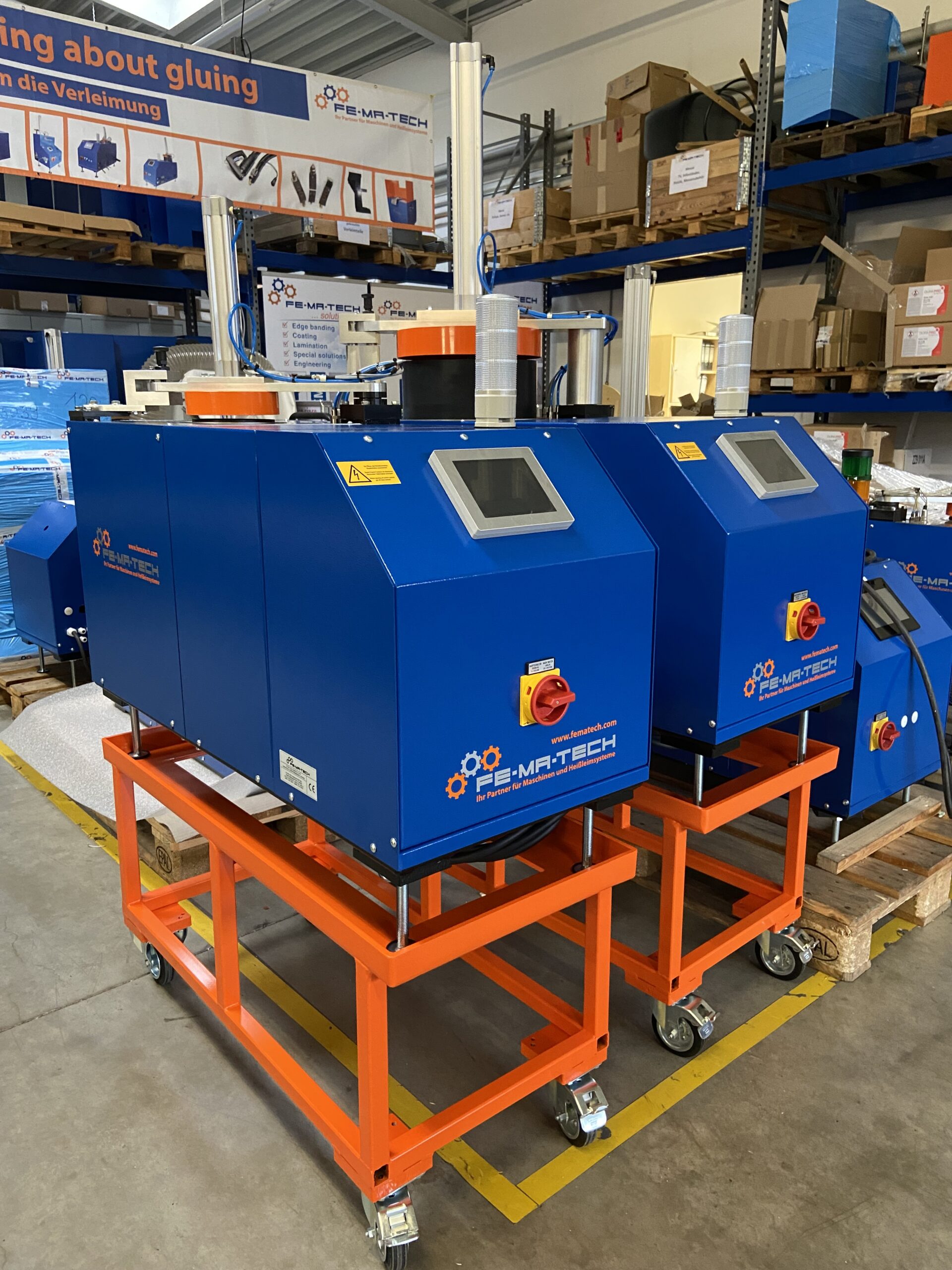 The FE-MA-TECH PUR CC Melter is a melter that can process two different colors of 4lb (2kg) PUR cartridges simultaneously, ideal for quick color changes. The device has a melting capacity of up to 2 liter/h per color. It is equipped with two gear pumps and precise PT100 temperature sensors, which enable the heating zones to be precisely controlled. Power supply: 480V /600V
