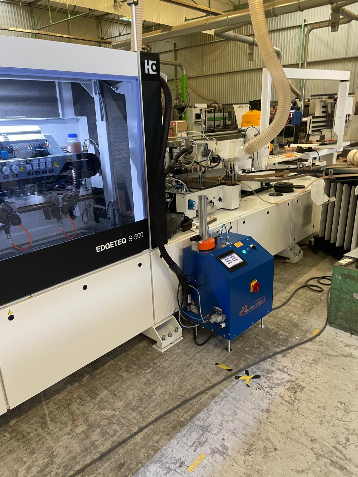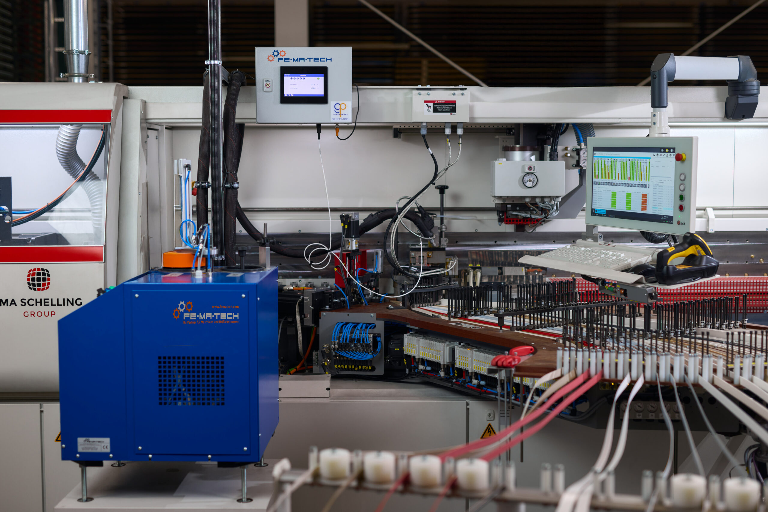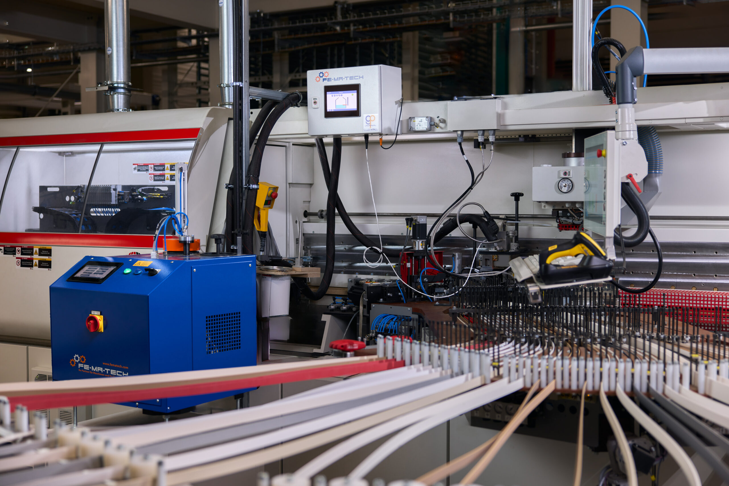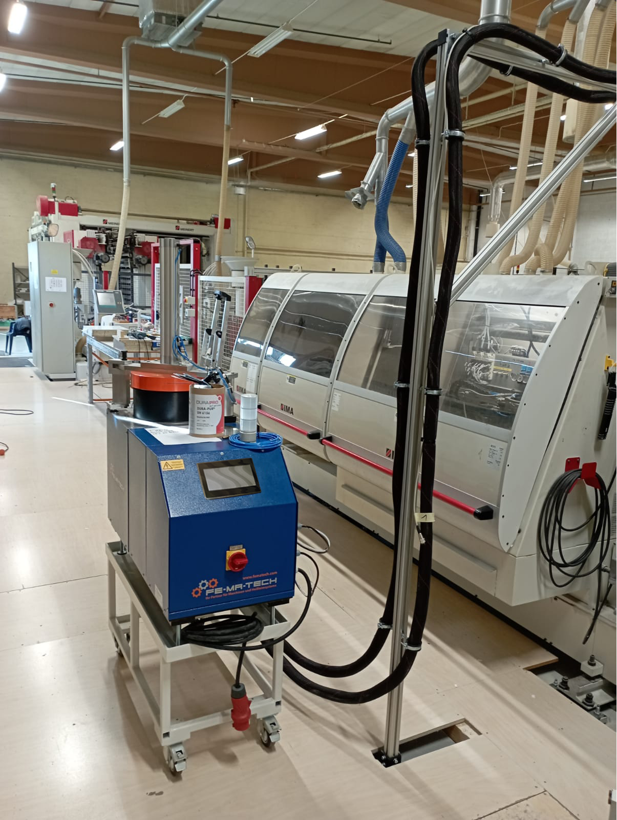 The PUR eSmart melting systems were designed to melt PUR adhesives in aluminum foil in an airtight manner and convey them to an edge banding machine. No additional gases such as nitrogen or similar are required. The adhesive can remain in the melting systems for several weeks without any problems. The machines are suitable for filling any edge banding machine.