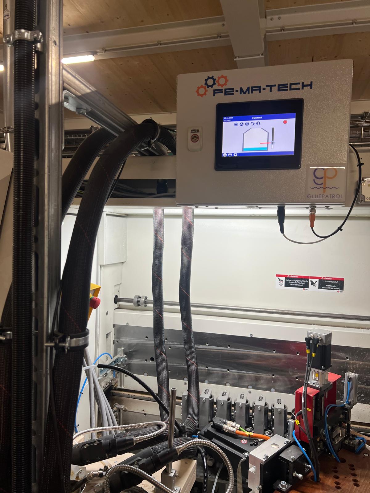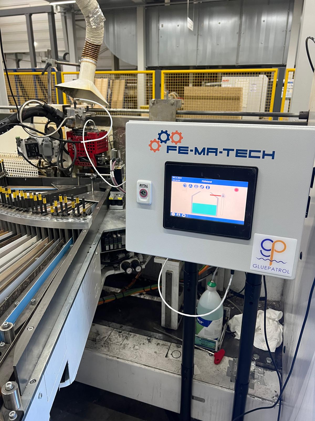 The FE-MA-TECH Gluepatrol is an innovative fill level control with which you can continuously adjust the adhesive fill level of your glue application to suit your individual production.